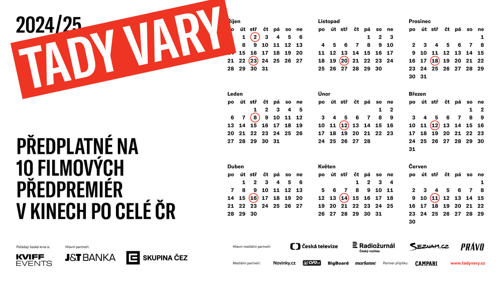 Tak vypadá program podzimní sezóny předplatného do kin Tady Vary, kterého se mohou zúčastnit milovníci filmu ze všech koutů České republiky. Předpremiéry filmů totiž paralelně poběží ve více než 70 kinech po celé republice a stejně jako loni budou doprovázeny i speciální slavnostní atmosférou. Termíny konání jednotlivých filmových večerů jsou k dispozici na webu Tady Vary.