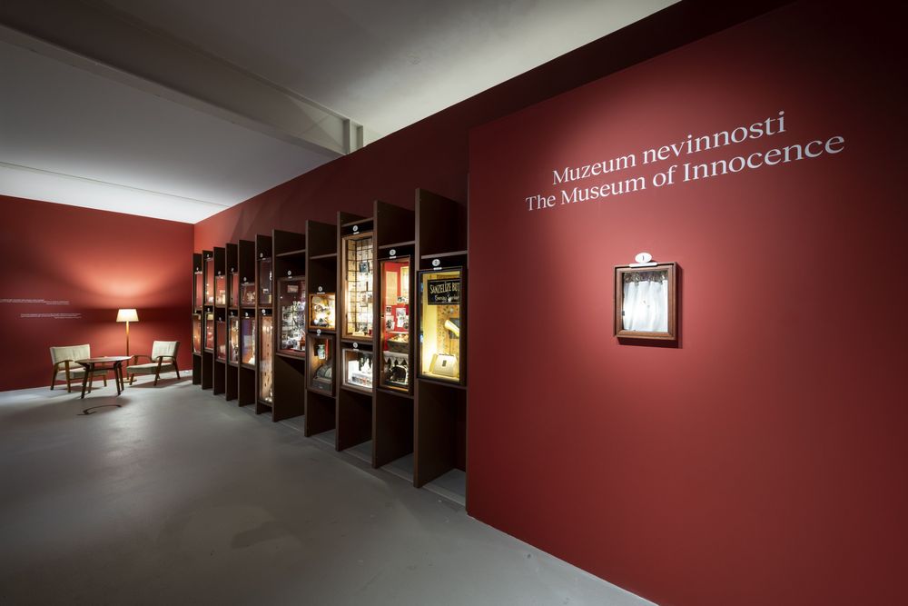 Srdcem výstavy je expozice istanbulského Muzea nevinnosti, které Orhan Pamuk otevřel v roce 2012 a které od počátku koncipoval paralelně se svou stejnojmennou knihou. Návštěvníci se prostřednictvím 41 „kabinetů kuriozit“ projdou milostným příběhem literárních hrdinů Kemala a Füsun. Fiktivní příběh o nenaplněné lásce Kemala, bohatého syna továrníka, a jeho půvabné sestřenice Füsun je v expozici „odvyprávěn“ prostřednictvím předmětů denní potřeby románových postav.
